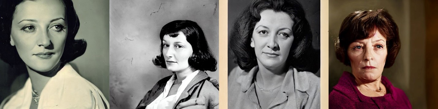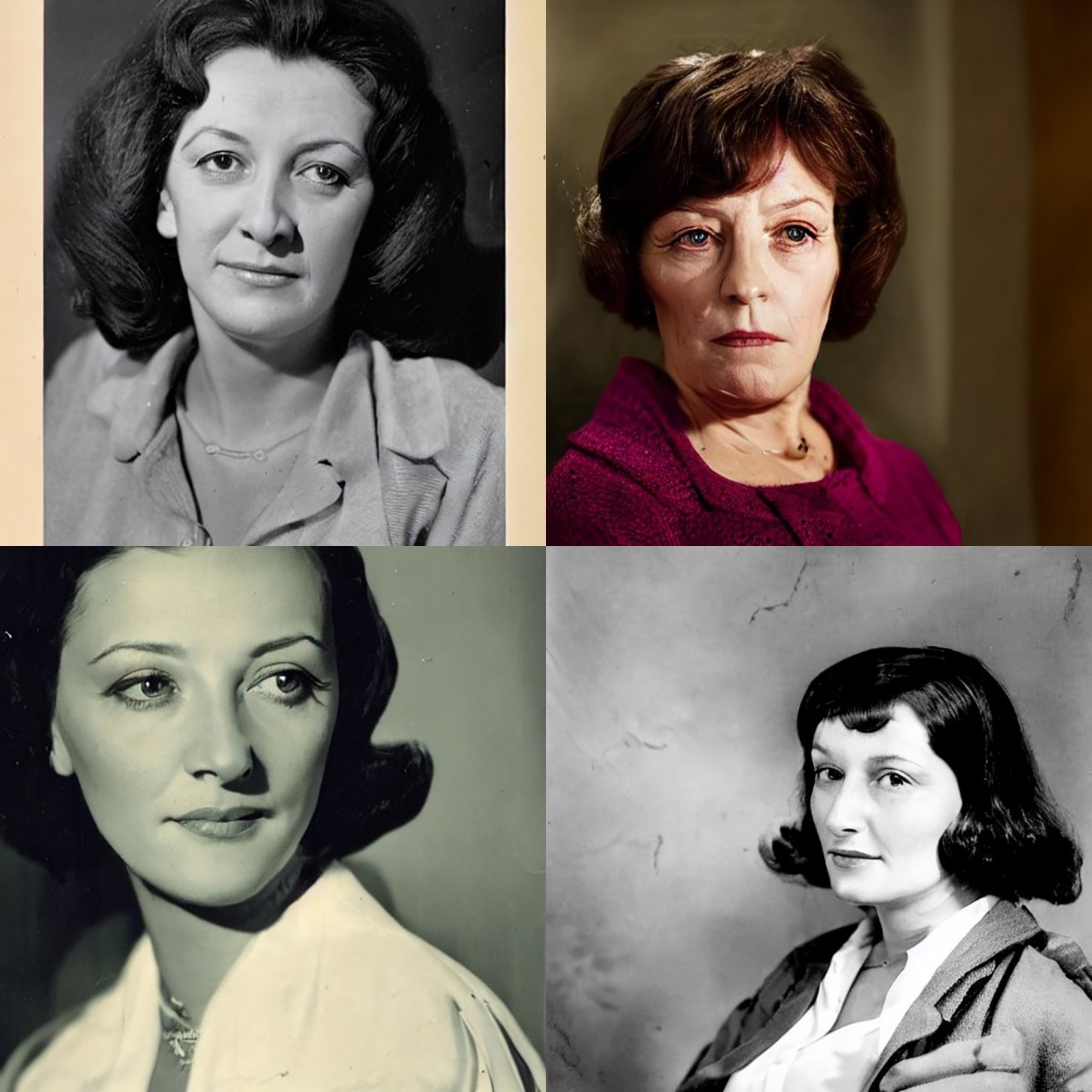 Autolography keeps humans tenuously in the loop, at least as writers— or in this case, a writer who is also a certain kind of moviegoer. In April 2023, a few months into my exploration of AI imaging, I prompted Stable Diffusion for a “Portrait of Claire Tourneur”. Though the name may also belong to some actual person or persons, I take it from a character in a film—about which more eventually—but first the images. For this run I configured Stable Diffusion to deliver four iterations on the prompt in a two-by-two grid. Here is the result, arrayed clockwise in order of generation:
